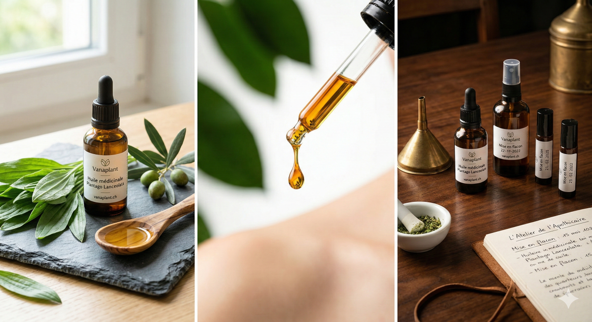 Découvrez le pouvoir apaisant de Vanaplant, notre huile médicinale 100% naturelle. Née de l'alliance exceptionnelle entre l'huile d'olive extra vierge pressée à froid et les vertus ancestrales du Plantago Lanceolata (plantain lancéolé), elle est votre nouveau réflexe soin au quotidien.Vos 3 actions clés en un seul geste :